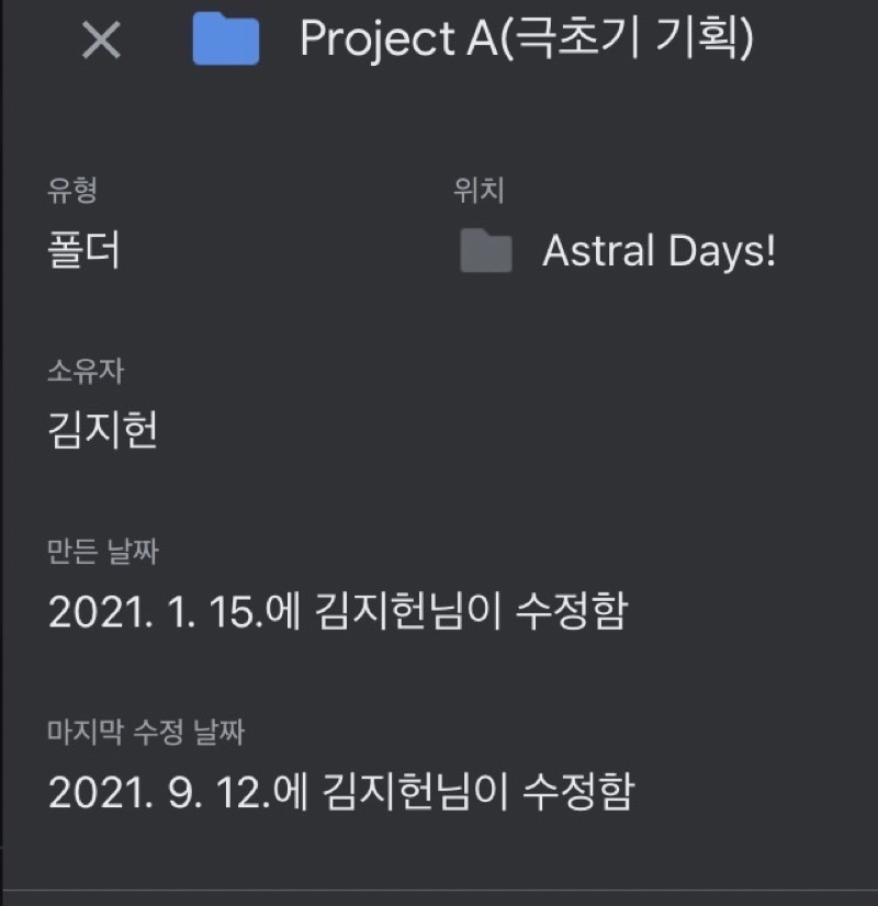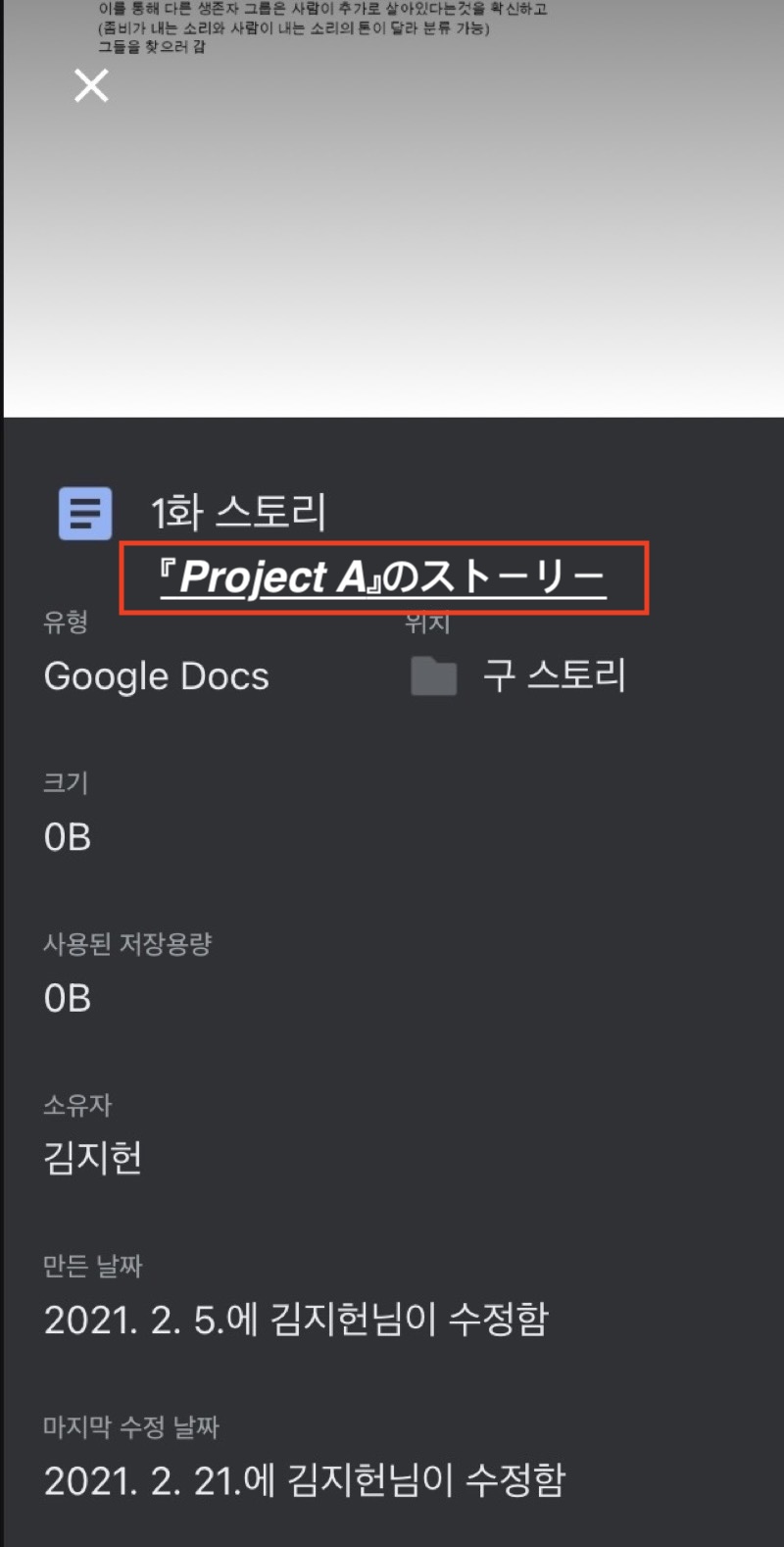 [Project A, 현재 확인 가능한, 당시 기획 파일 중 가장 오래된 파일]